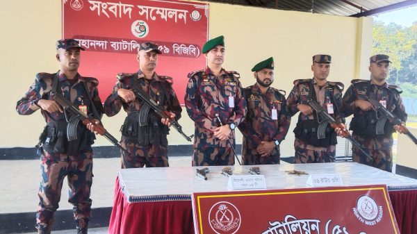 চাকপাড়া সীমান্ত থেকে ৫৯ বিজিবির ৩ টি বিদেশী পিস্তল ও ৬ রাউন্ড গুলি উদ্ধার