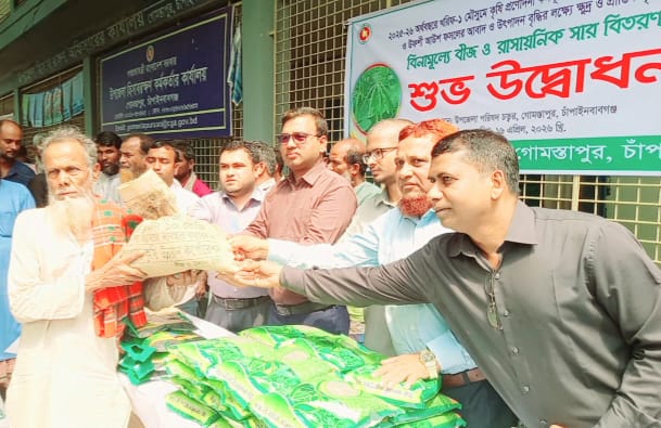 চাঁপাইনবাবগঞ্জের গোমস্তাপুর উপজেলায় কৃষি সম্প্রসারন অধিদপ্তর এর আয়োজনে রোপা আউশ ( উফশী) ধানের বীজ ও রাসায়নিক সার বিতরণ এর উদ্বোধন করা হয়েছে। বৃহস্পতিবার সকাল দশটায়  উপজেলা চত্বরে ২০২৫/২০২৬ অর্থ বছরে খরিপ মৌসুমে গ্রীষ্মকালীন মুগ গ্রীষ্মকালীন, তিল,পাট ও আউশ আবাদ উৎপাদন বৃদ্ধির লক্ষে  বিনামূল্যে বীজ ও রাসায়নিক সার সহায়তা প্রণোদনা কর্মসূচির উদ্বোধন করা হয়।