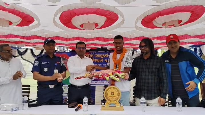 গোমস্তাপুরে বীরোচিত সংবর্ধনা দেয়া হলো সাফ অনুর্ধ-২০ ফুটবল টুর্নামেন্টে বিজয়ী বাংলাদেশ দলের অন্যতম সদস্য ইউসুফ আলীকে