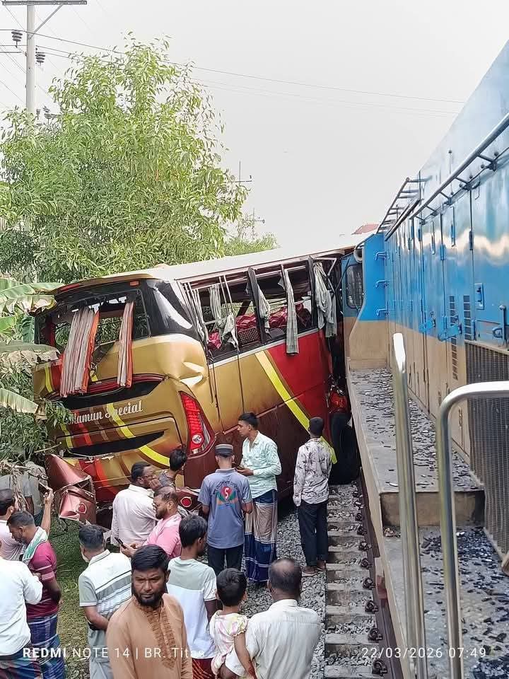 চাঁপাইনবাবগঞ্জের বাস, কুমিল্লা রেলক্রসিংয়ের সময় ট্রেনের সঙ্গে ভয়াবহ সংঘর্ষের ঘটনা ঘটেছে।