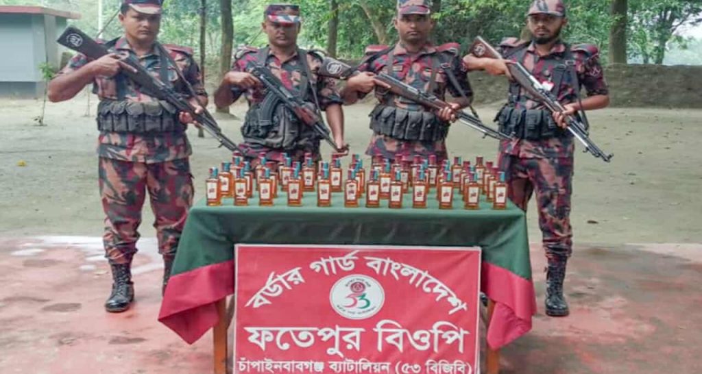 চাঁপাইনবাবগঞ্জ সীমান্তে ৪৭ বোতল ভারতীয় মদ আটক করেছে বিজিবি
