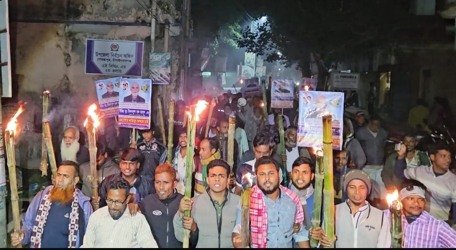 মিছিলটি উপজেলা পরিষদ চত্বর থেকে শুরু হয়ে পুরো বাজার প্রদক্ষিণ করে।