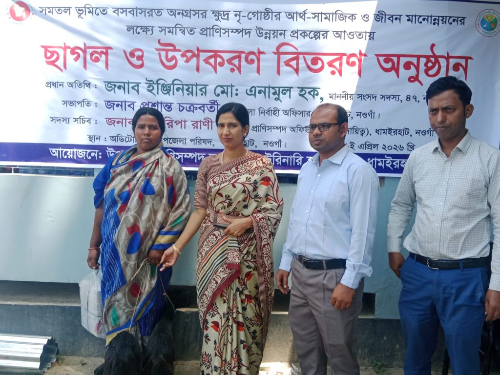 নওগাঁর ধামইরহাটে ক্ষুদ্র নৃ-গোষ্ঠীর জীবনমান উন্নয়ন প্রকল্পের আওতায় ছাগল বিতরণে ভয়াবহ অনিয়ম ও ওজন জালিয়াতির অভিযোগ উঠেছে। সরকারি নীতিমালা অনুযায়ী প্রতিটি ছাগলের ওজন অন্তত ৮ কেজি হওয়ার কথা থাকলেও সরবরাহ করা হয়েছে ৪ থেকে ৬ কেজি ওজনের রুগ্ন ছাগল। এ নিয়ে উপকারভোগীদের মাঝে তীব্র ক্ষোভ ও হট্টগোল সৃষ্টি হলে শেষ পর্যন্ত বিতরণ কার্যক্রম স্থগিত করতে বাধ্য হয় ।উপজেলা প্রাণিসম্পদ দপ্তর।