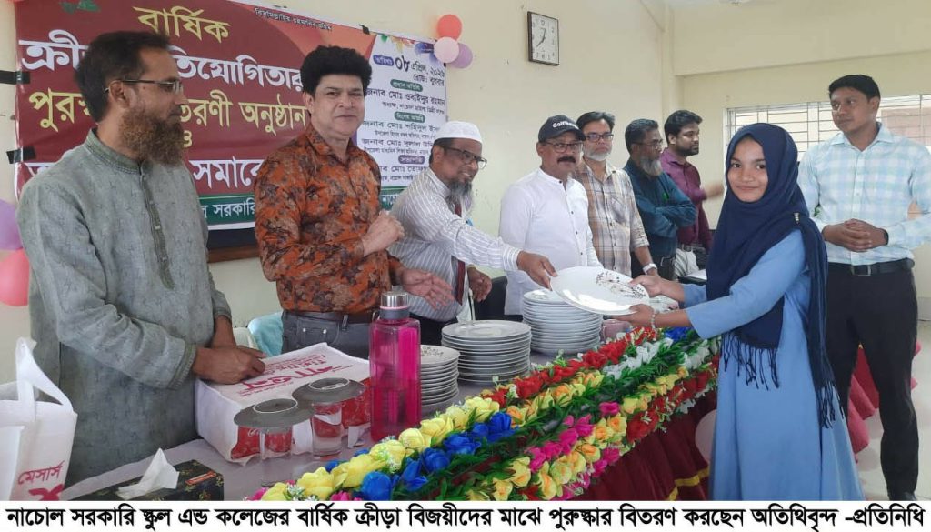 চাঁপাইনবাবগঞ্জের নাচোল সরকারি স্কুল এন্ড কলেজের বার্ষিক ক্রীড়া প্রতিযোগিতায় বিজয়ীদের মাঝে পুরুস্কার বিতরণ ও অভিভাবক সমাবেশ অনুষ্ঠিত হয়েছে।