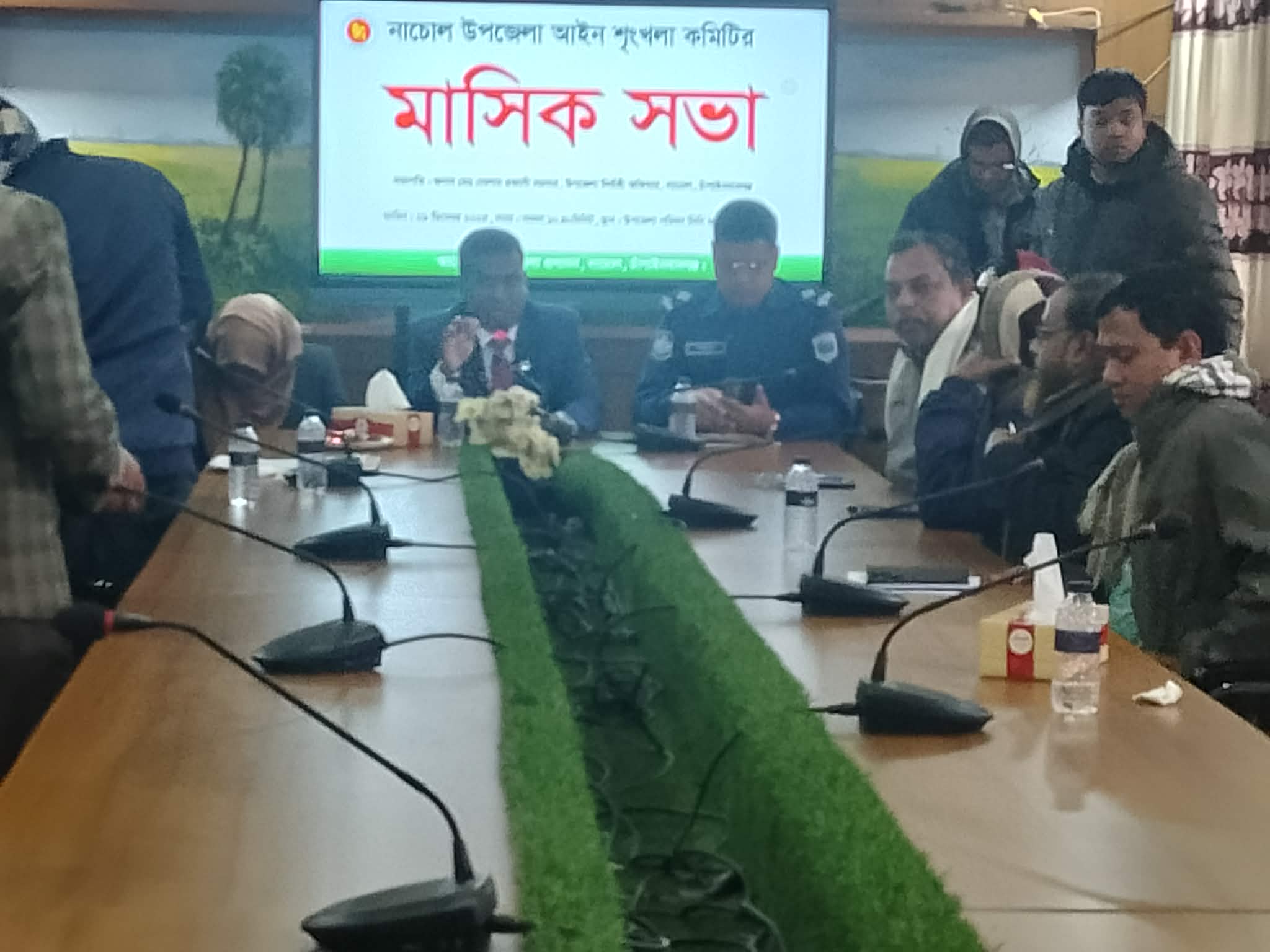 সোমবার (২৯ ডিসেম্বর) সকাল ১০:৩০ মিনিটের সময় চাঁপাইনবাবগঞ্জের নাচোল উপজেলা পরিষদ মিনি কনফারেন্স রুমে 'আইন শৃঙ্খলা কমিটির মাসিক সভা' অনুষ্ঠিত হয়েছে।