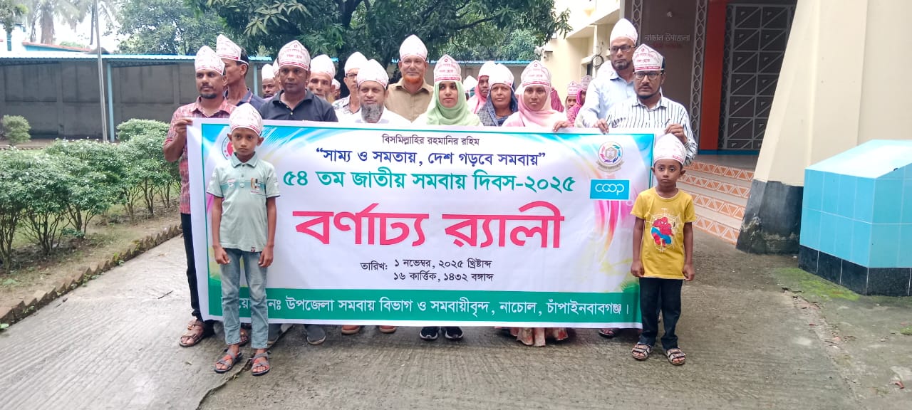 এই স্লোগানকে সামনে রেখে- চাঁপাইনবাবগঞ্জের নাচোলে বিভিন্ন আয়োজনের মধ্য দিয়ে ৫৪ তম জাতীয় সমবায় দিবস - ২০২৫ পালিত হয়েছে।