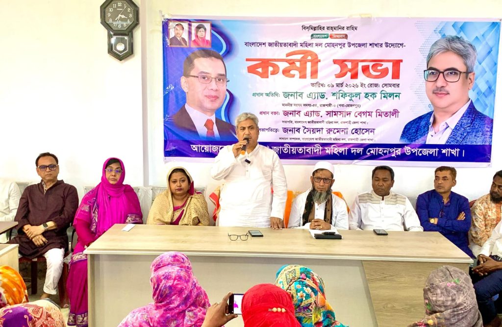 রাজশাহীর মোহনপুরে বাংলাদেশ জাতীয়তাবাদী মহিলা দলের কর্মীসভা অনুষ্ঠিত হয়েছে।