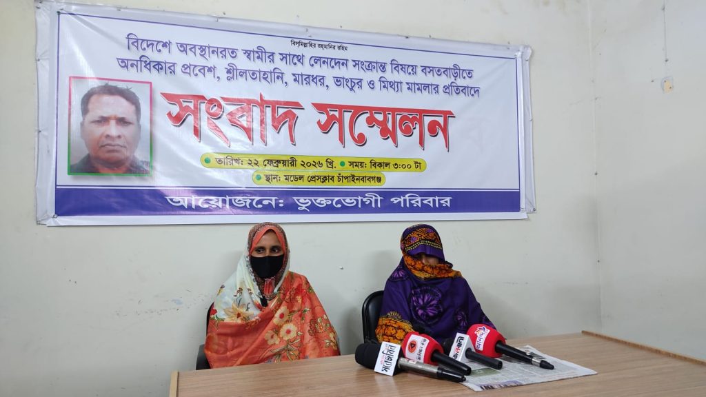 বিদেশে অবস্থানরত স্বামীর সাথে লেনদেন সংক্রান্ত বিষয়ে বসতবাড়ীতে অনধিকার প্রবেশ, শ্লীলতাহানি, মারধর, ভাংচুর ও মিথ্যা মামলার প্রতিবাদে সংবাদ সম্মেলন অনুষ্ঠিত হয়েছে।