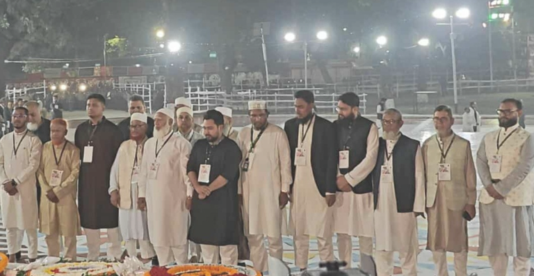 ফুল দিয়ে শ্রদ্ধা জানানোর পাশাপাশি শহীদ বেদিতে দাঁড়িয়ে ভাষা শহীদদের আত্মার মাগফিরাত কামনায় দোয়া করেন জামায়াত আমিরসহ ১১ দলের সংসদ সদস্যরা।