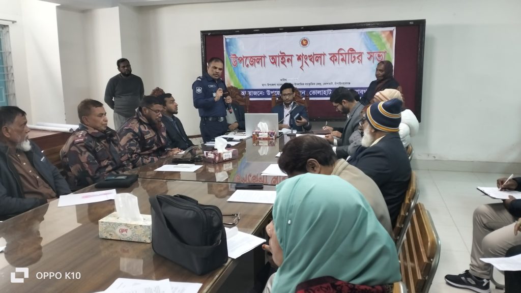 চাঁপাইনবাবগঞ্জের ভোলাহাটে উপজেলা প্রশাসনের উদ্যোগে উপজেলা আইন-শৃঙ্খলা কমিটির মাসিক সভা ও অন্যান্য সমন্বয় সভা অনুষ্ঠিত হয়েছে। বুধবার (২৪ ডিসেম্বর ২০২৫) সকাল ১০টায় উপজেলা মডেল মসজিদের মিলনায়তনে এসব সভা অনুষ্ঠিত হয়।