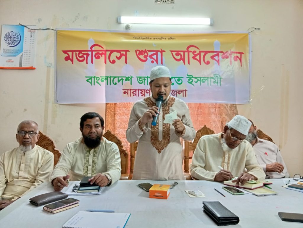 তিনি আজ ৬ মার্চ জুমাবার সকালে নারায়ণগঞ্জের মুয়িদ ফাউ-েশন মিলনায়তনে বাংলাদেশ জামায়াতে ইসলামী নারায়ণগঞ্জ জেলার বার্ষিক মজলিসে শুরার অধিবেশনে প্রধান অতিথির বক্তব্যে এ কথা বলেন। কেন্দ্রীয় মজলিসে শুরা সদস্য ও নারায়ণগঞ্জ জেলা আমীর মুহাম্মদ মমিনুল হক সরকারের সভাপতিত্বে অনুষ্ঠিত শুরার অধিবেশনে অন্যান্যেও মধ্যে উপস্থিত ছিলেন কেন্দ্রীয় মজলিসে শুরা সদস্য ও নারাায়ণগঞ্জ জেলা সেক্রেটারী মুহাম্মদ হাফিজুর রহমান, সহকারী সেক্রেটারী আবু সাঈদ মুন্না, জেলা কর্ম পরিষদ সদস্য অধ্যাপক মাসুদুর রহমান গিয়াস, প্রকৌশলী আবদুল বাকী, অধ্যাপক ইলিয়াস মোল্লা।