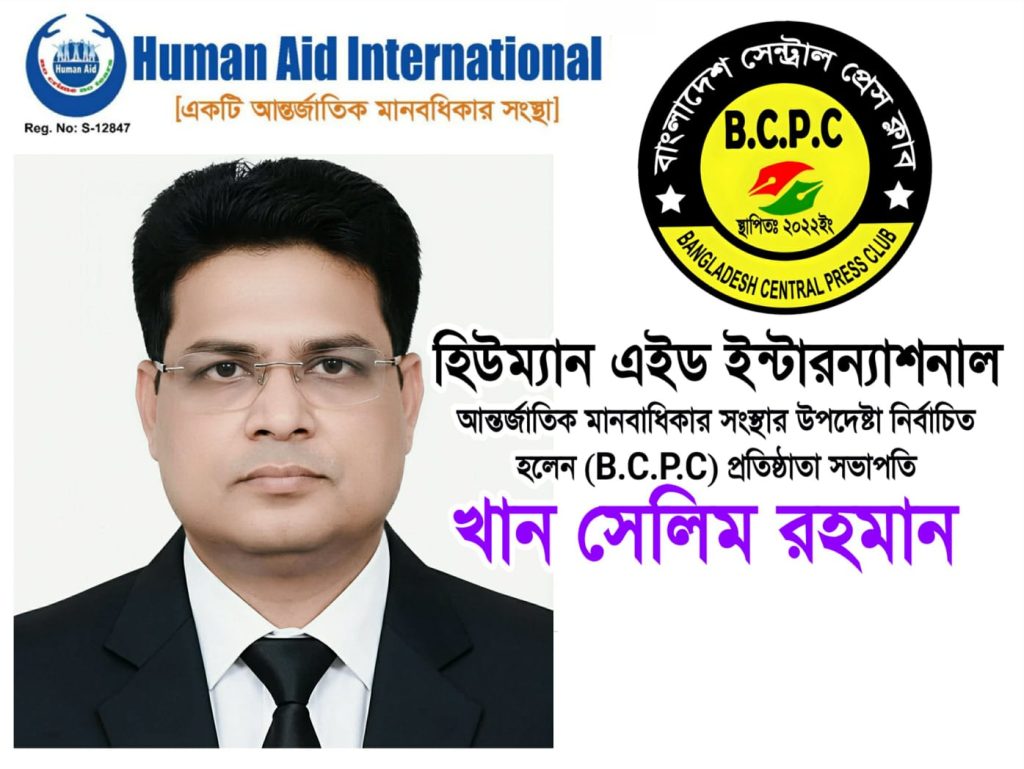 বাংলাদেশ সেন্ট্রাল প্রেস ক্লাব (B.C.P.C)-এর প্রতিষ্ঠাতা সভাপতি, জাতীয় দৈনিক মাতৃজগত পত্রিকার সম্পাদক, বিশিষ্ট সাংবাদিক ও মানবাধিকার কর্মী খান সেলিম রহমান আন্তর্জাতিক মানবাধিকার সংস্থা হিউম্যান এইড ইন্টারন্যাশনালের উপদেষ্টা পরিষদের স্থায়ী সদস্য হিসেবে নির্বাচিত হয়েছেন। তাঁর এ নির্বাচনে দেশের মানবাধিকার অঙ্গন, সাংবাদিক সমাজ ও সুশীল মহলে ব্যাপক সন্তোষ ও আশাবাদ ব্যক্ত করা হয়েছে।