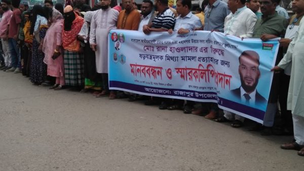রাজাপুরে মা*ম*লা প্রত্যাহারের দাবিতে মানববন্ধন ও স্মারকলিপি প্রদান।