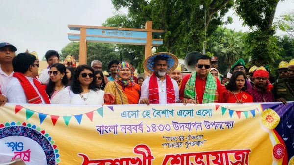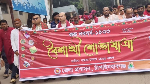 চাঁপাইনবাবগঞ্জে বৈশাখী শোভাযাত্রা ও বর্নাঢ্য আয়োজনে জেলাব্যাপী বাংলা নববর্ষ উদযাপন