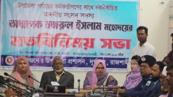দুর্গাপুরে নবনির্বাচিত এমপি অধ্যাপক নজরুল ইসলাম মন্ডলের সঙ্গে প্রশাসনের মতবিনিময় ও আইন-শৃঙ্খলা সভা
