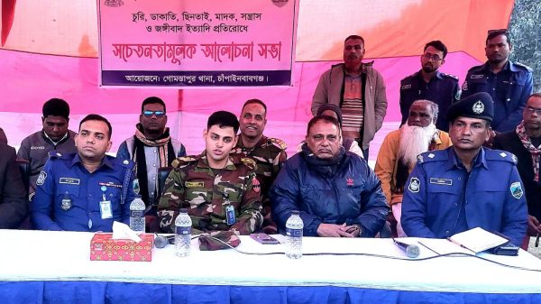 সড়ক ডাকাতি ও মাদকের বিরুদ্ধে গোমস্তাপুর থানা পুলিশের সচেতনামূলক সভা